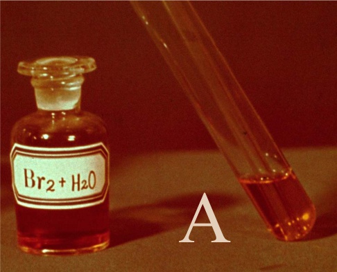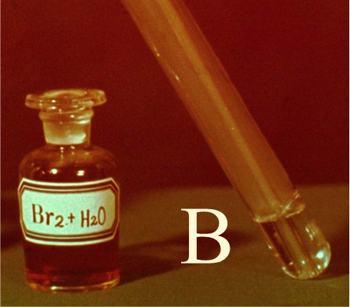 Se dispone en A de 10mL de agua de bromo (preparada,