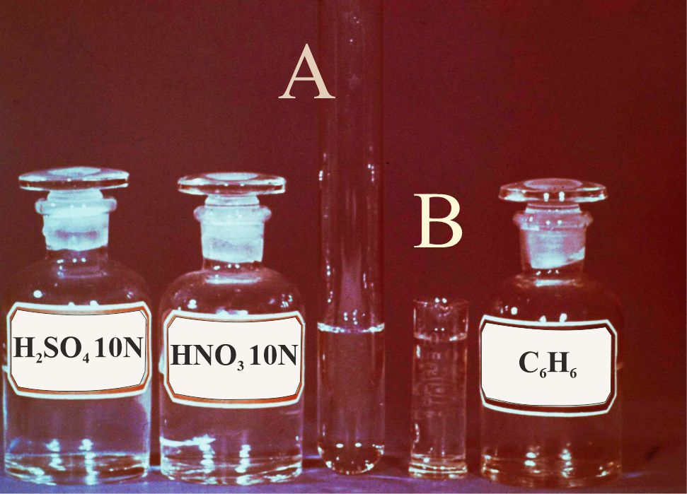 de ácido nítrico concentrado y 20mL de ácido sulfúrico, sobre dicha mezcla se