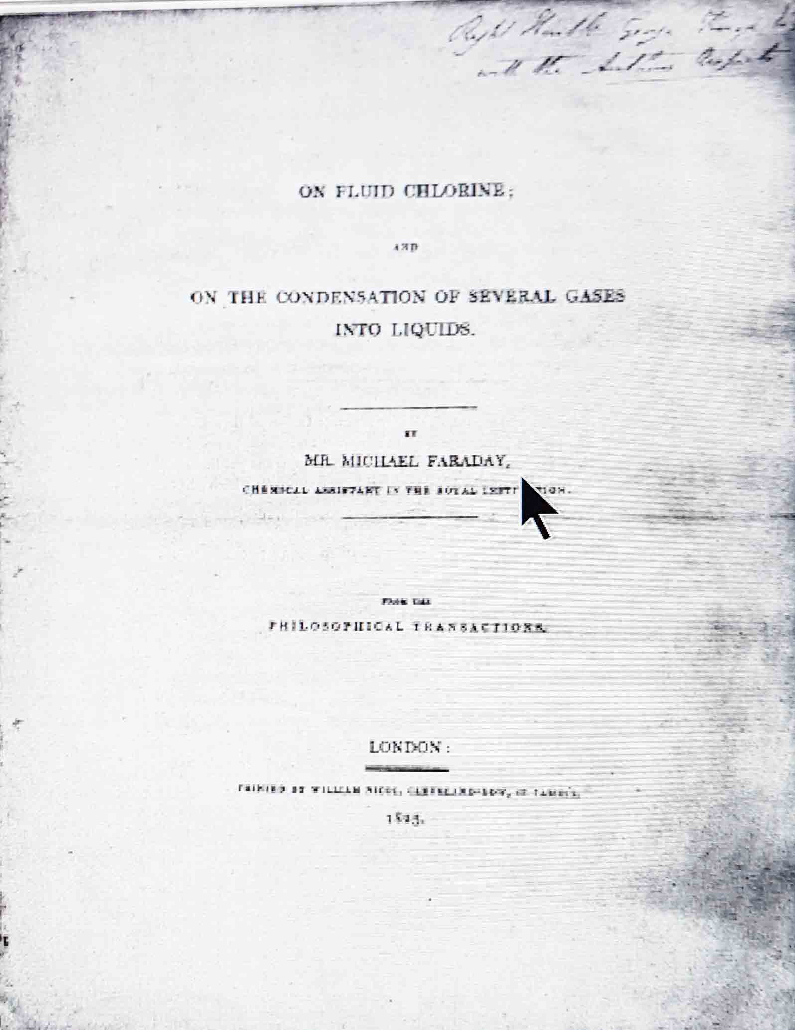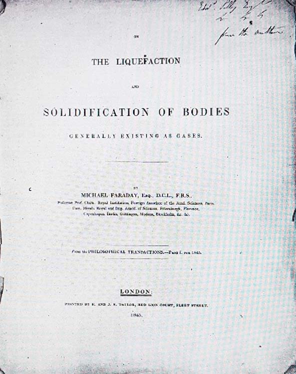 y “Condensation of several Gases into Líquids”. Continuando con la licuefacción de gases, logró licuefacción de ácido sulfuroso (SO2), sulfuro de