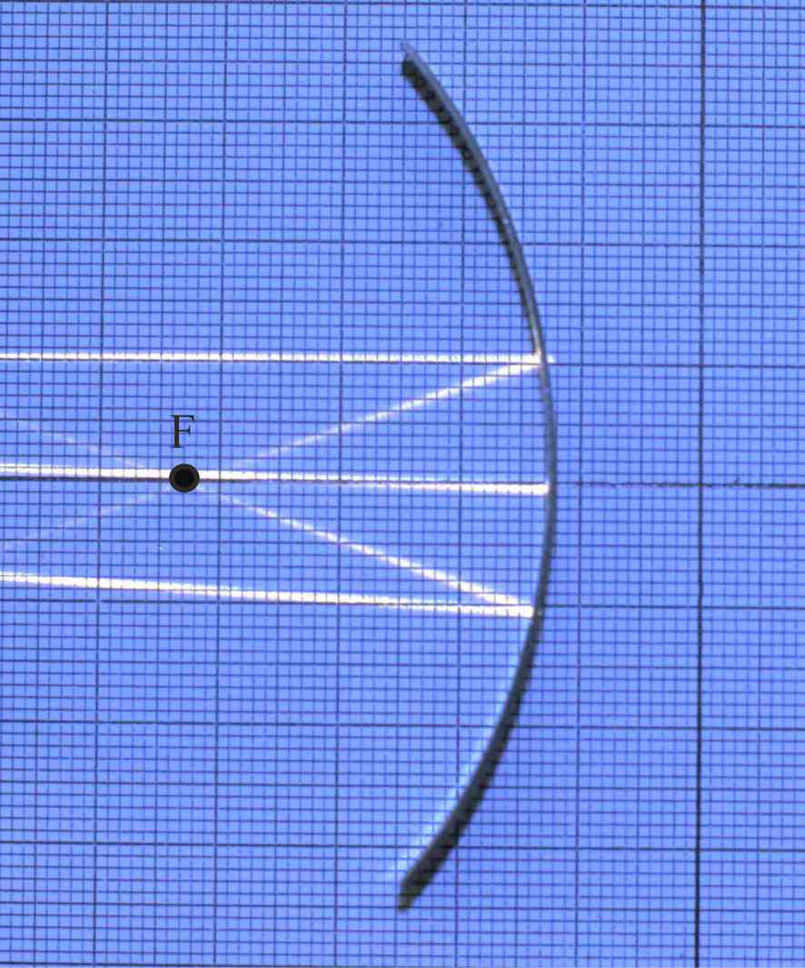 luz sobre un espejo cóncavo. Si dispusiéramos de un objeto a 50mm de su centro de