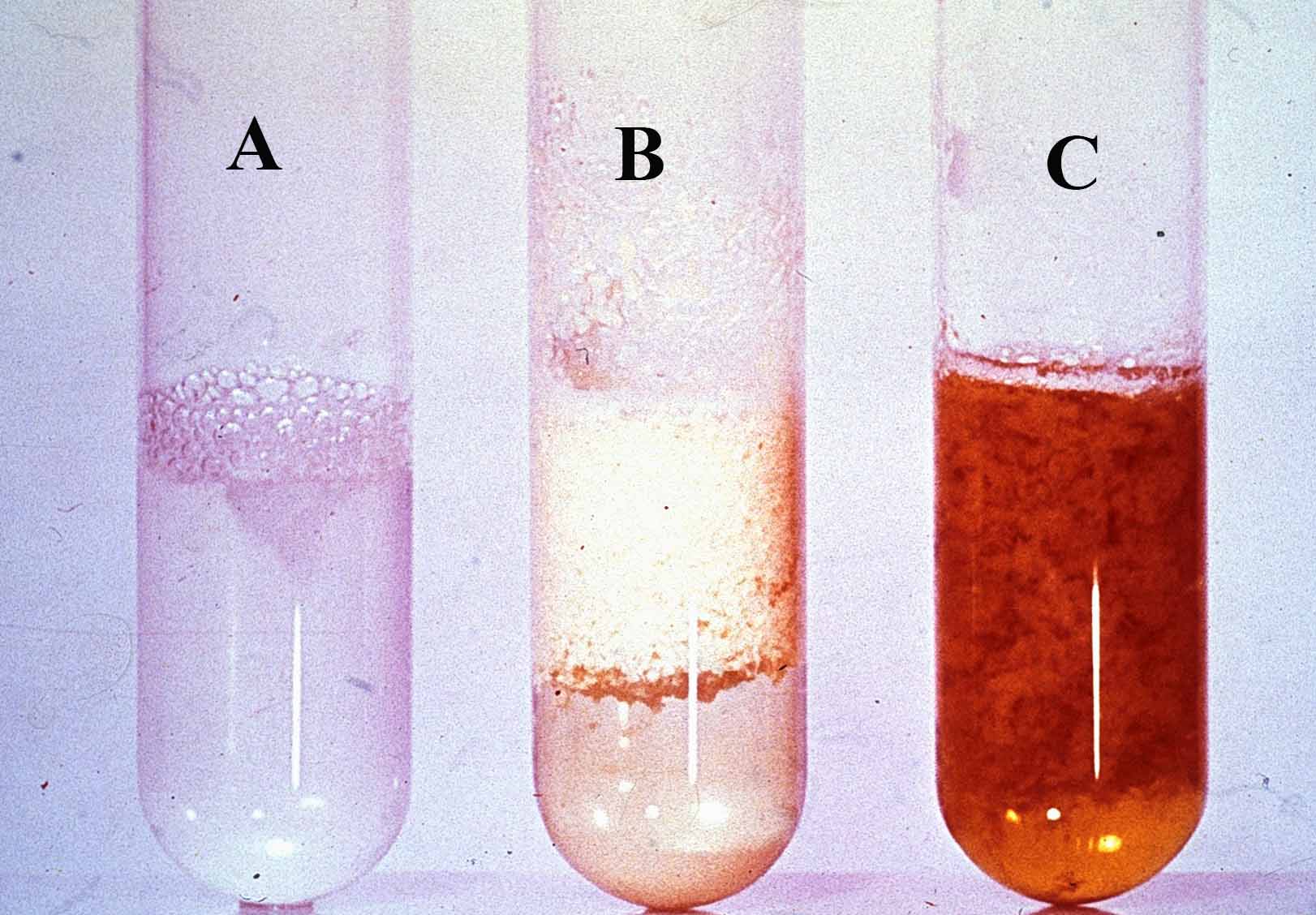 Se dispone en A albúmina de huevo y agua y en B,10 mL, ácido