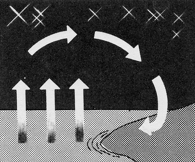 c) EL AIRE CALIENTE EMPUJA EL POLVO EN SUSPENSIÓN